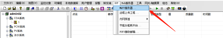 1、点击IOT,,选择MQTT服务器进入,配置MQTT配置
