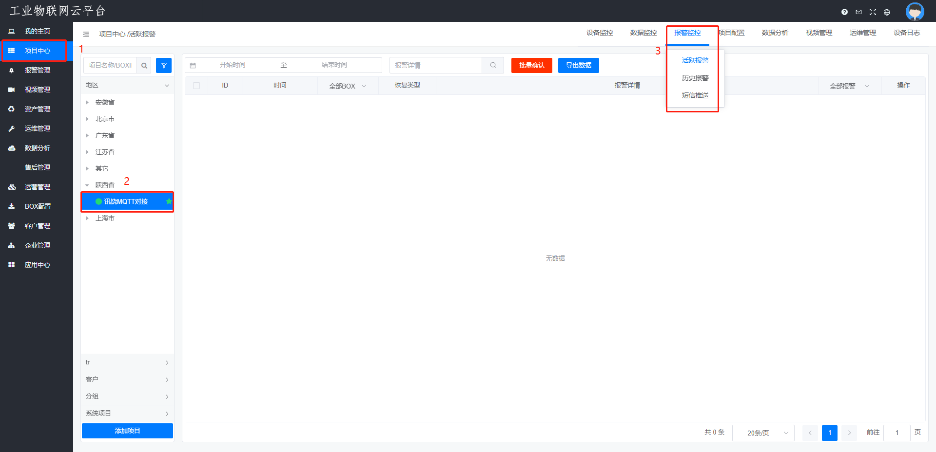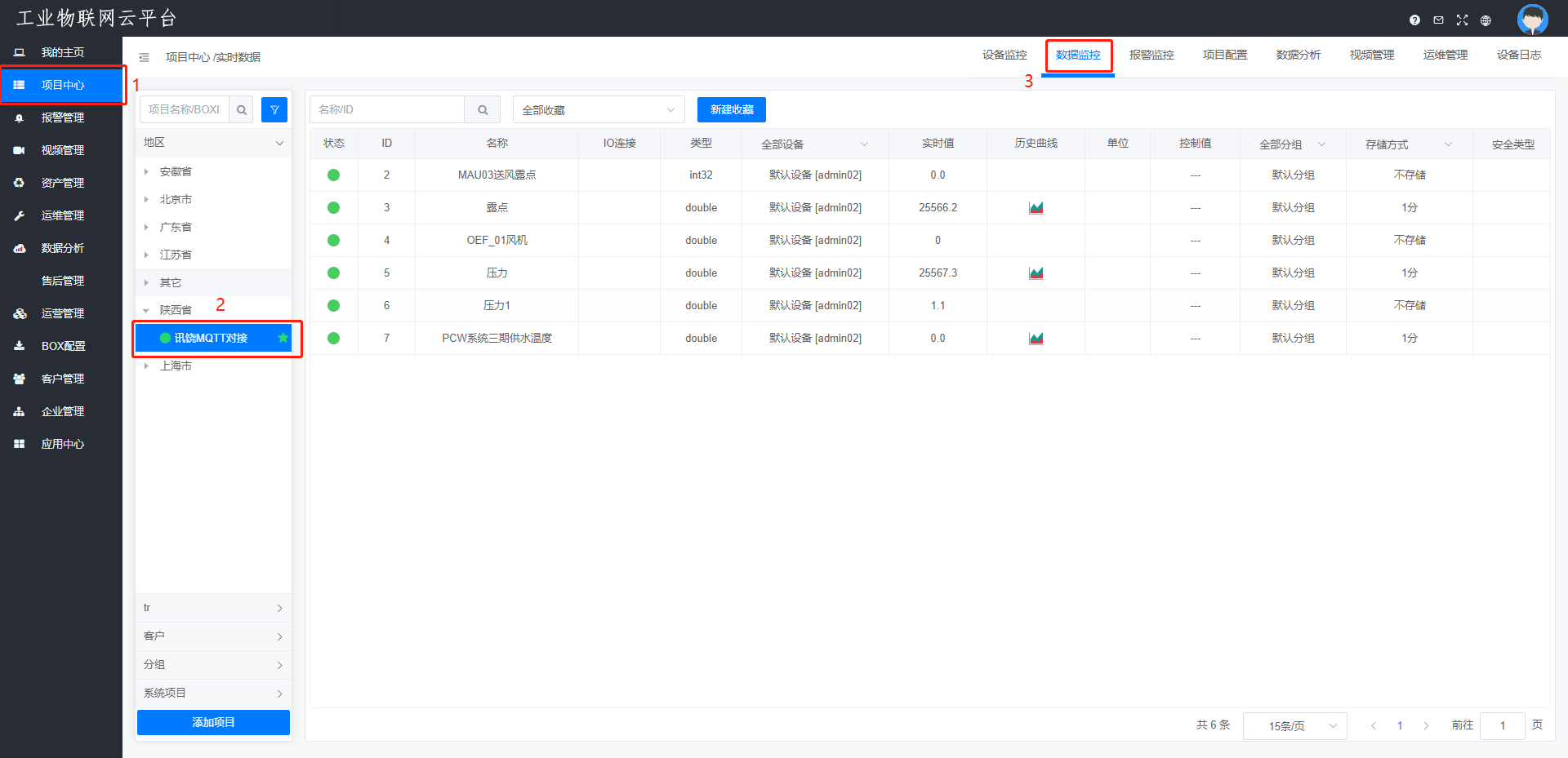 # 6. 云平台【项目中心】 查看数据监控和报警