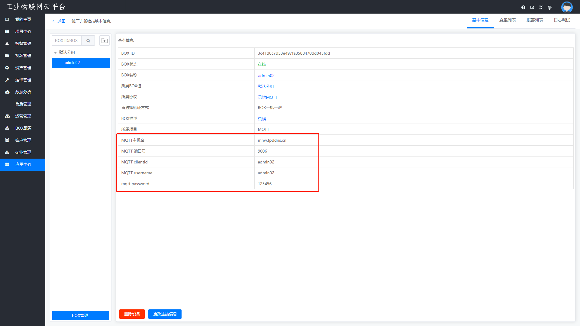 若MQTT 通讯正常,BOX状态变为“在线”;