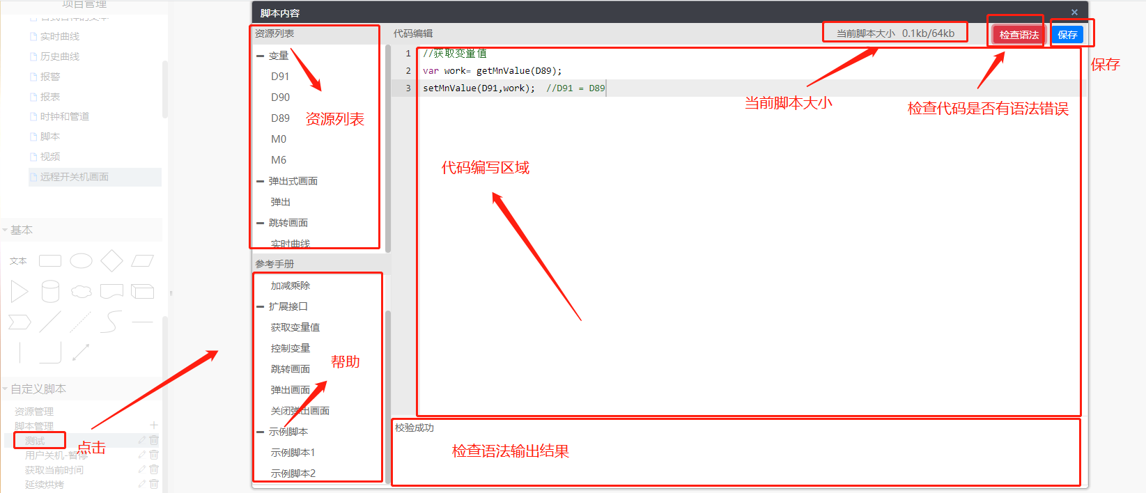 点击“脚本管理”的+号,弹出【脚本页面】,输入脚本名称后点击“保存”。