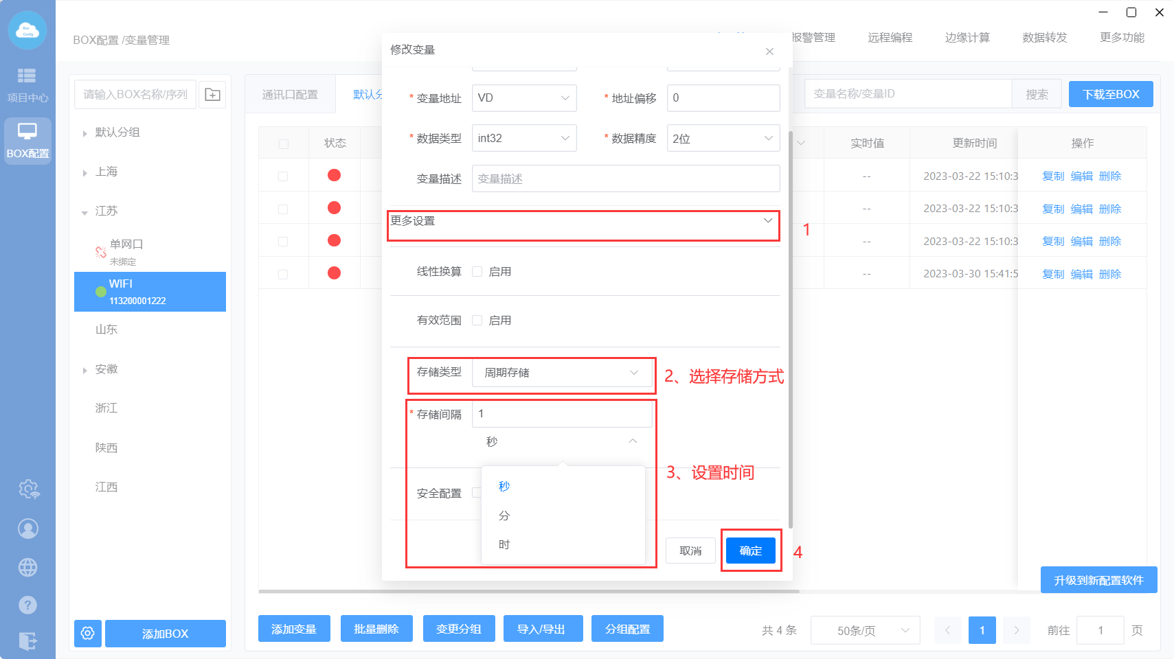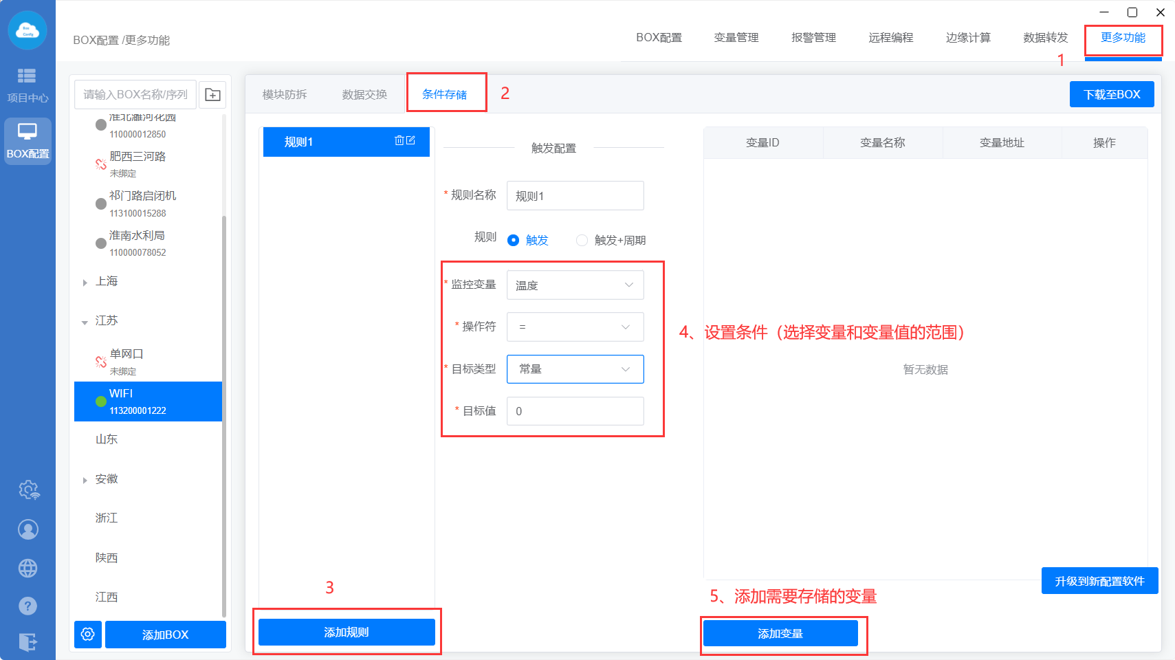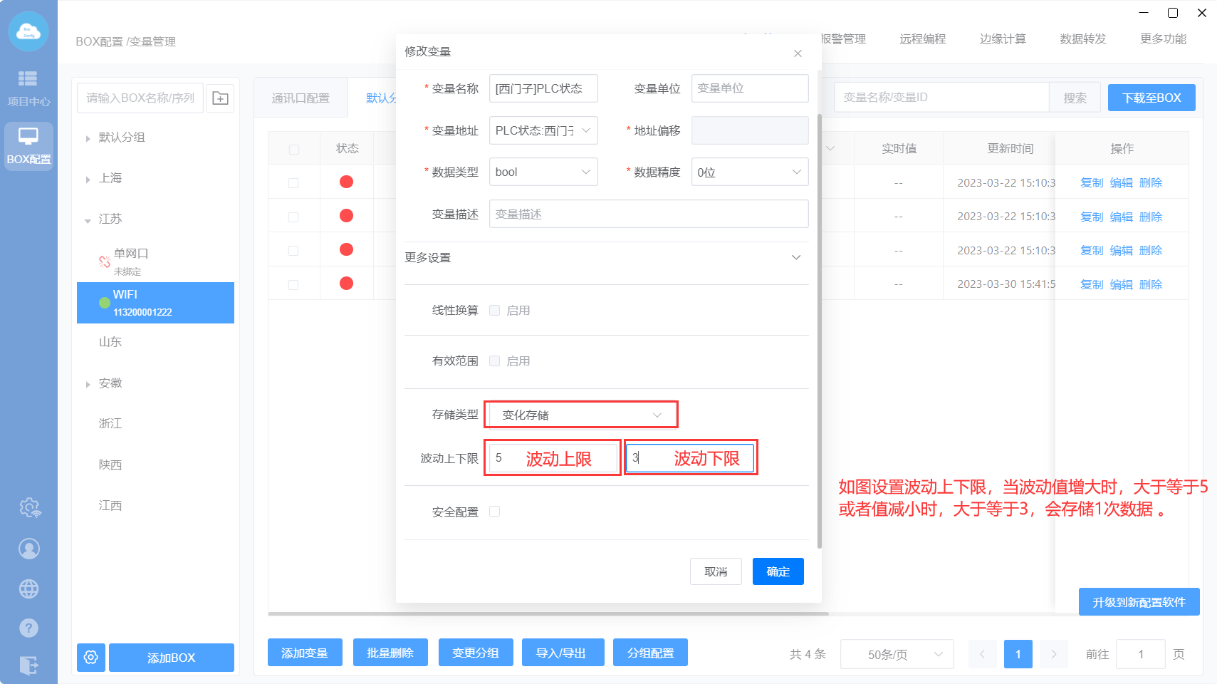 当条件由不满足变成满足时,存储配置里添加的变量存1次数据。