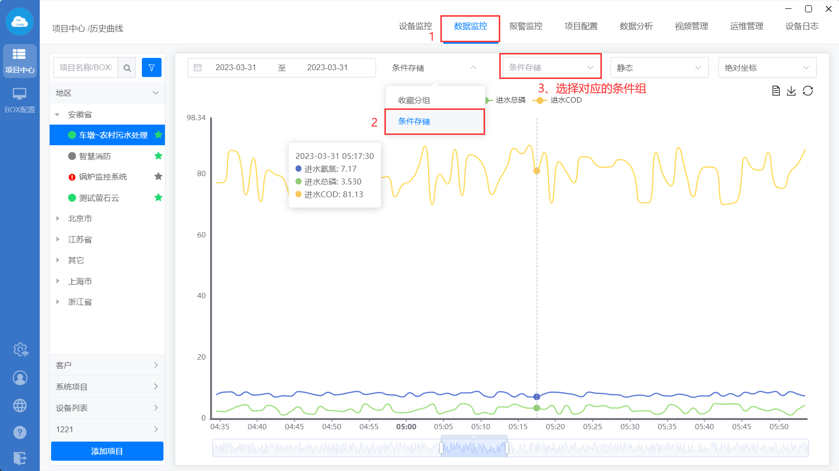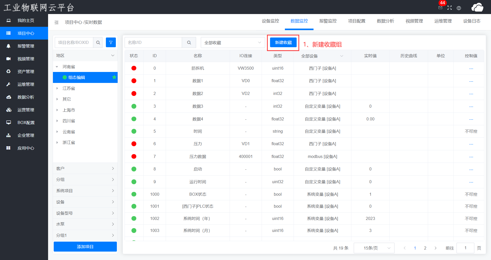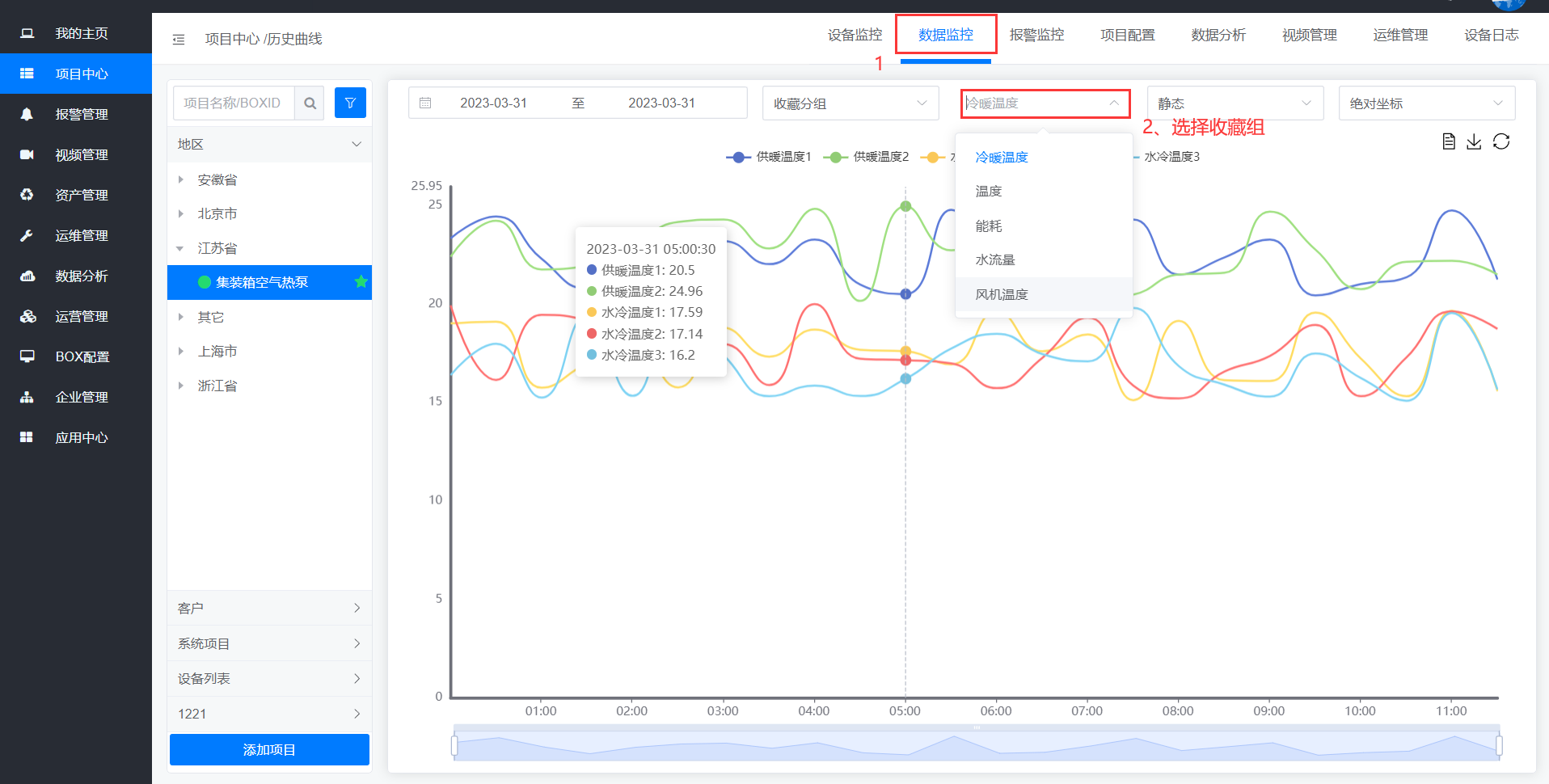 - 进入【数据监控】—>【历史曲线】,选择收藏组