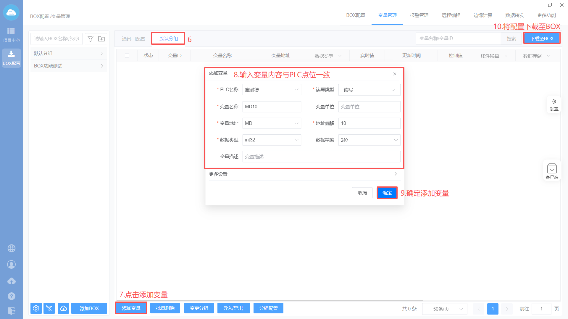 1. Box设置(注意:修改box参数,与PLC保持在同一网段)