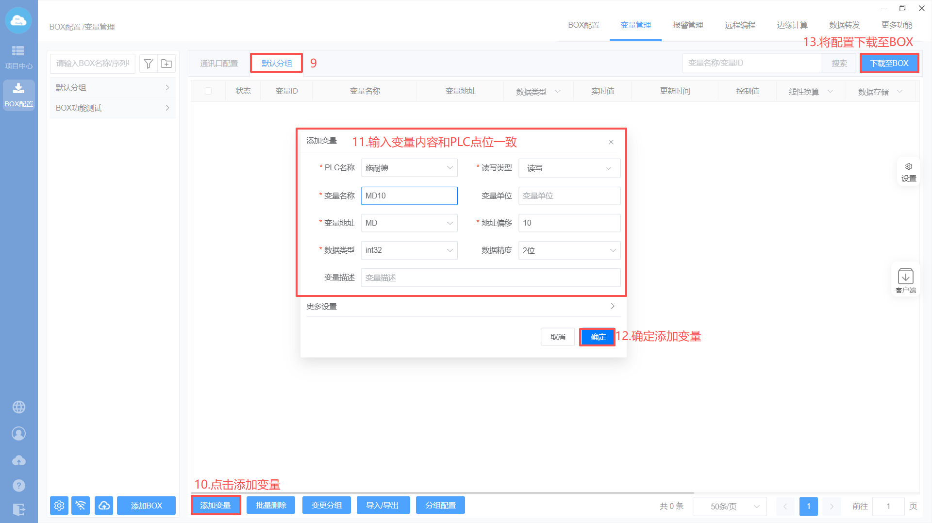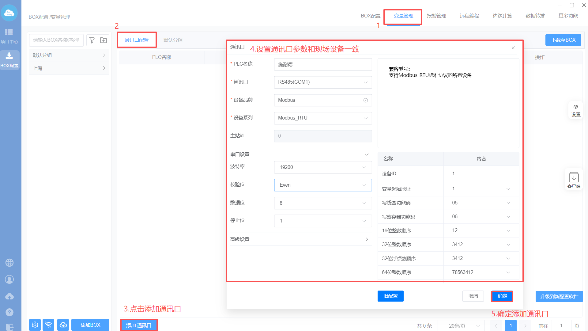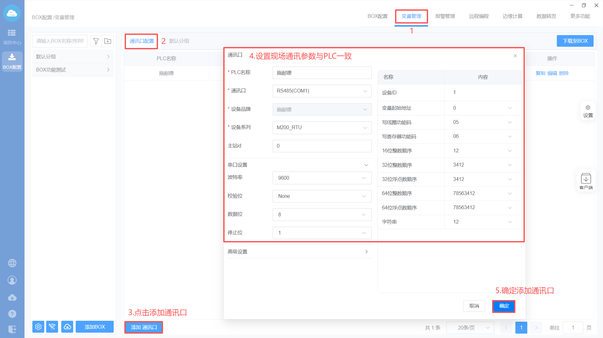 1. 设置BOX串口参数(和PLC设置保持一致)