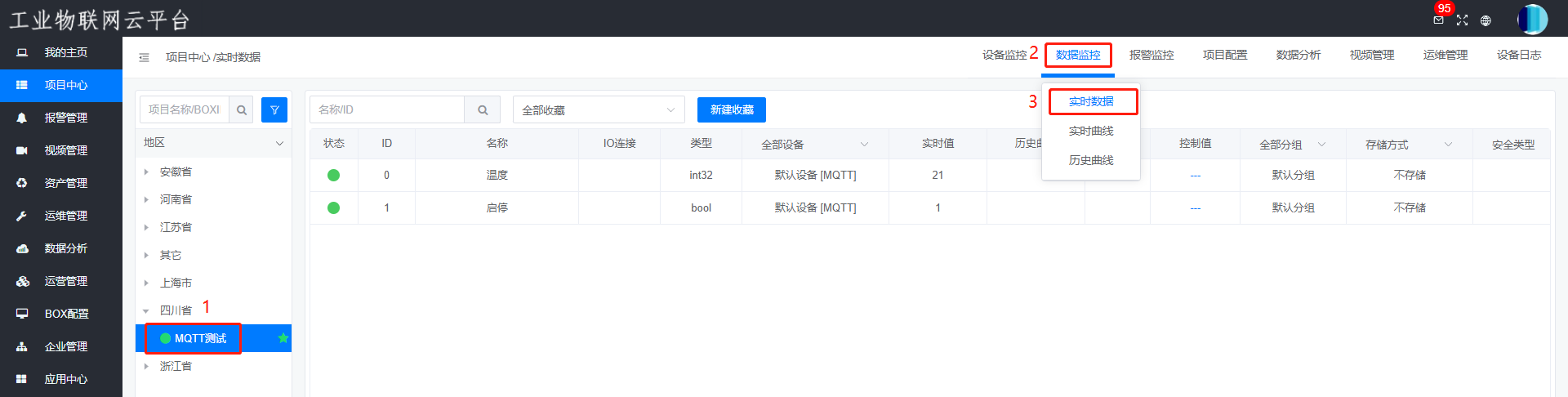 # 6. 云平台【项目中心】 查看数据监控和报警
