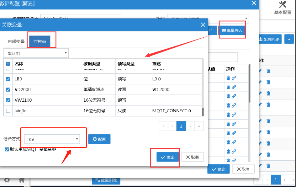 勾选要上传的监控点(注意:监控点 只能选择【数据监控】页面 设置为“读写”或者“只读”的变量)