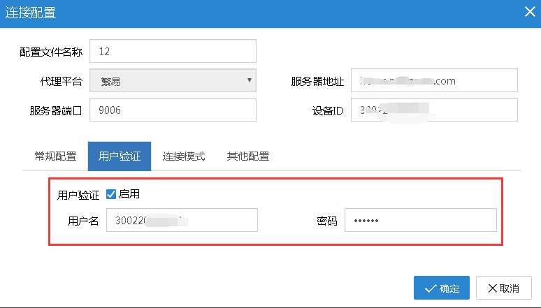 点击“用户验证”,勾选“启用”,输入用户名和密码,其中