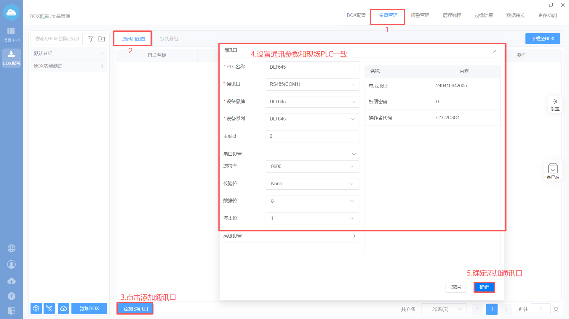 PS:通讯口中的“电表地址”,按照仪表上显示的地址填写即可(电表地址为12位的数字)