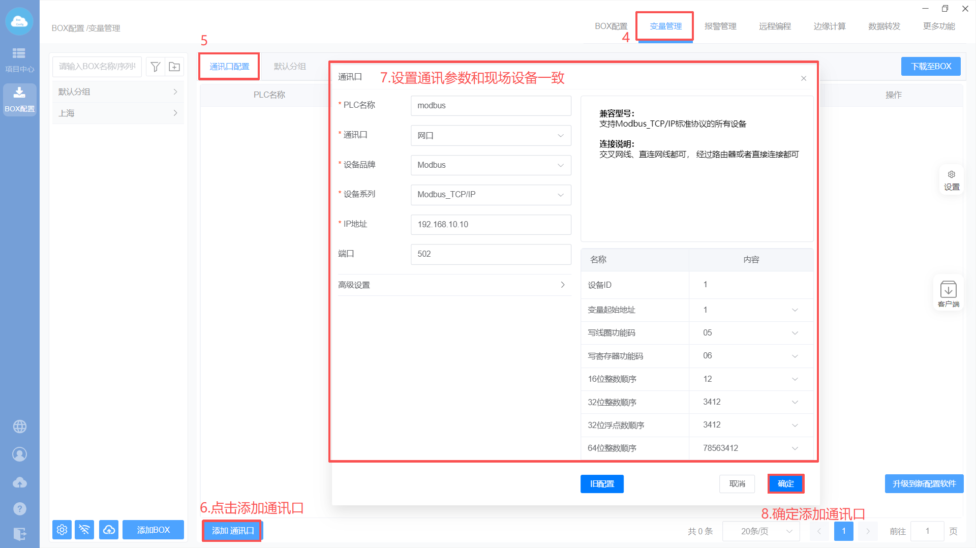 Box设置(注意:修改box参数,与PLC保持在同一网段)