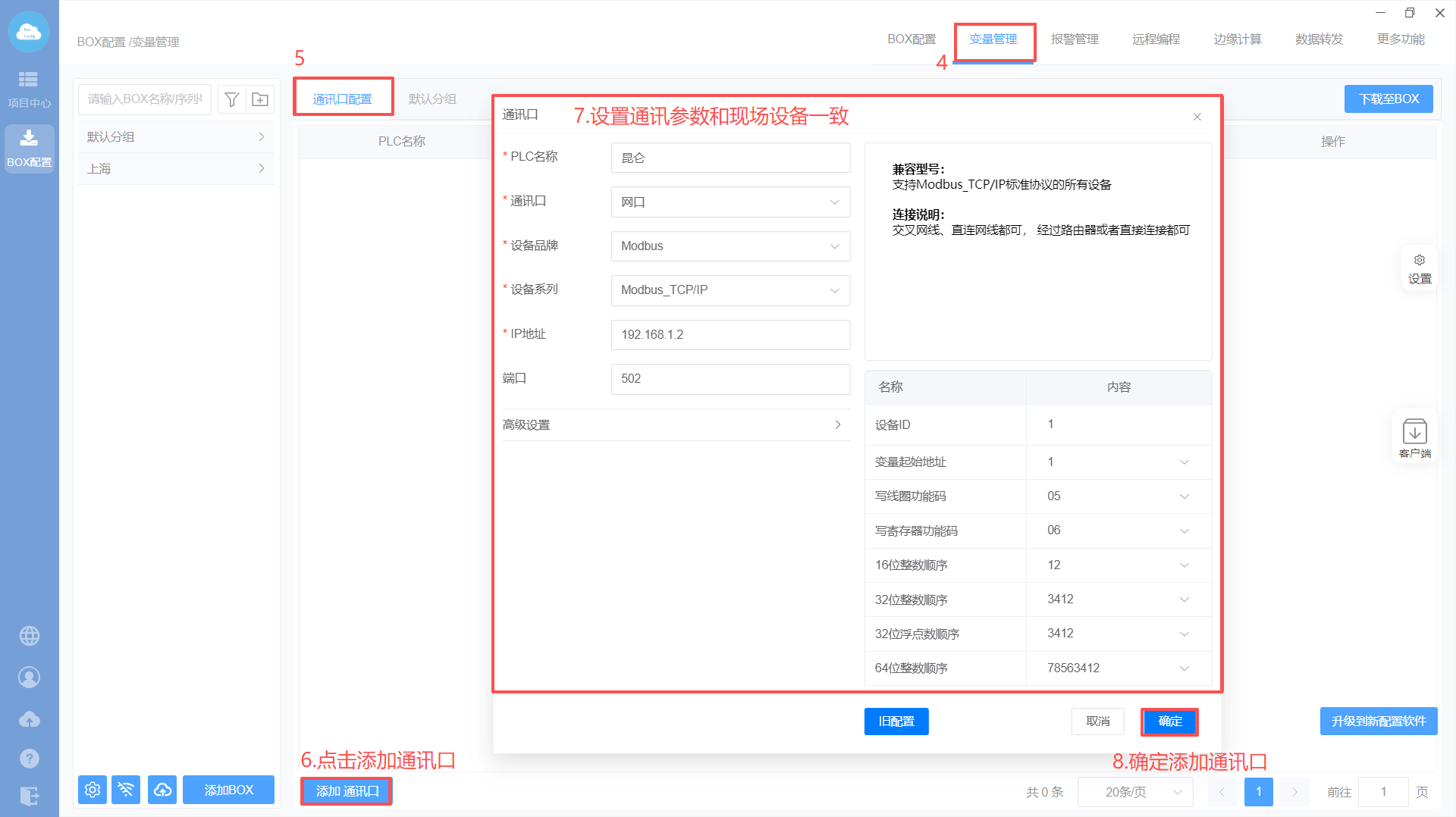 Box和MCGS通讯是走modbus的协议