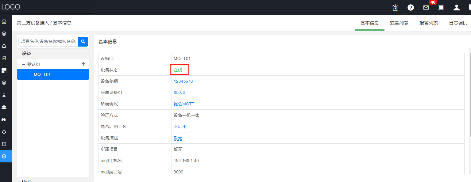 数据类型:布尔/整数/长整数/浮点数,与MQTT设备变量设置保持一致