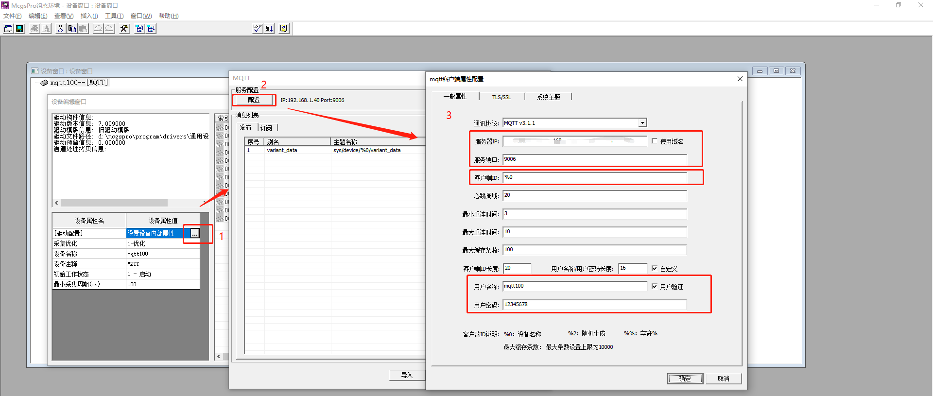 其中 mqtt 主机名,mqtt端口号,mqtt username,mqtt password 要填入MQTT配置中;