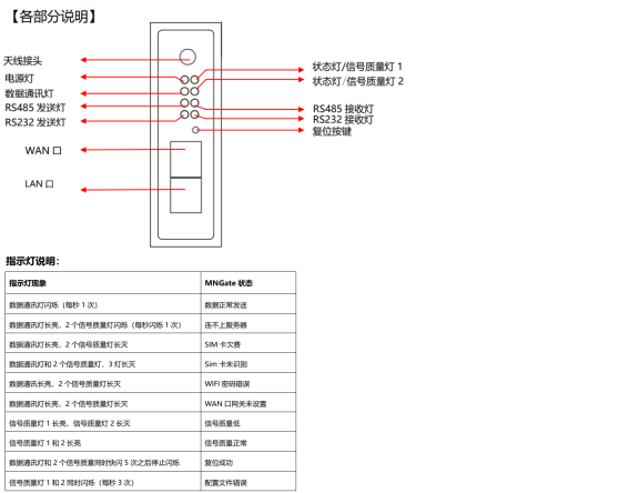 | 联网正常,但是离线 | 慢闪 | 1> 服务器地址是否正确; 2> 服务器地址是否加入白名单; 3> 服务器是否正常 | ||