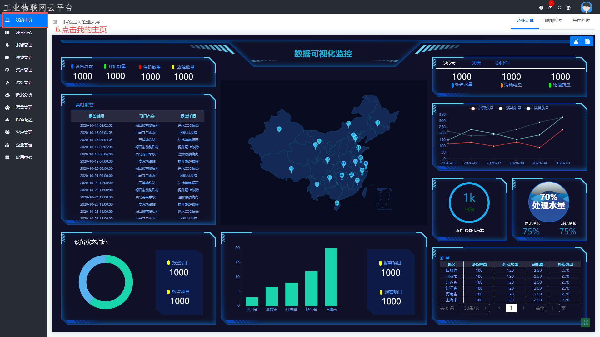 - 在我的主页中以企业大屏的形式进行展示查看