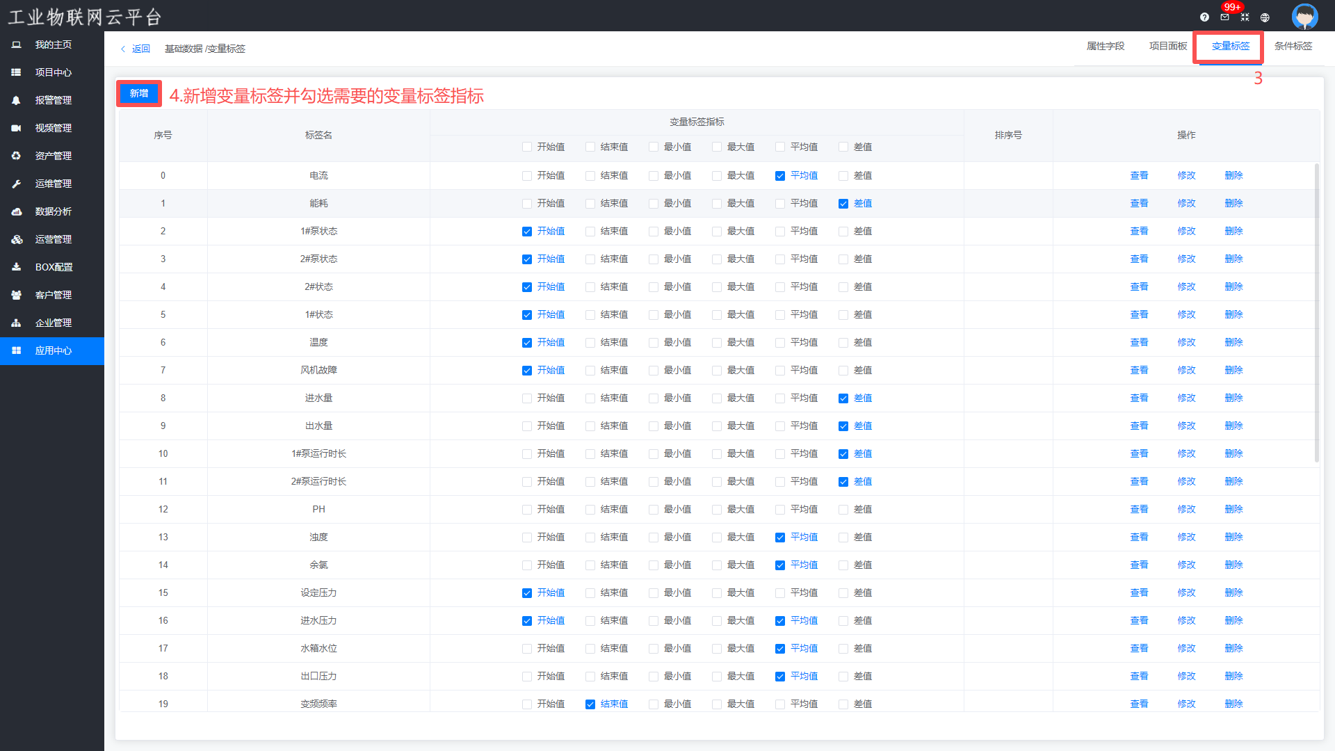 云平台应用中心—>基础数据—>变量标签,添加变量标签