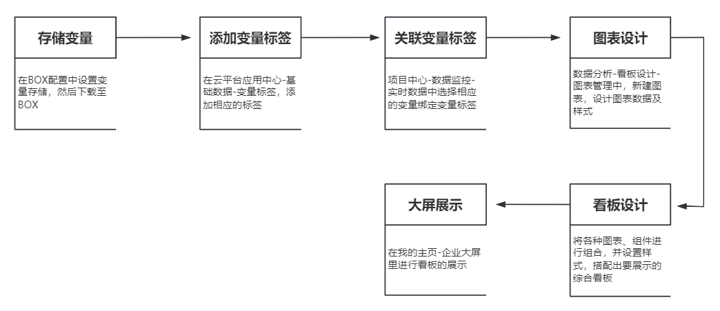 数据分析—>新增看板—>图表管理—>新增图表—>选择数据集合—>拖拽维度—>拖拽变量—>选择图表样式—>点击预览—>点击保存