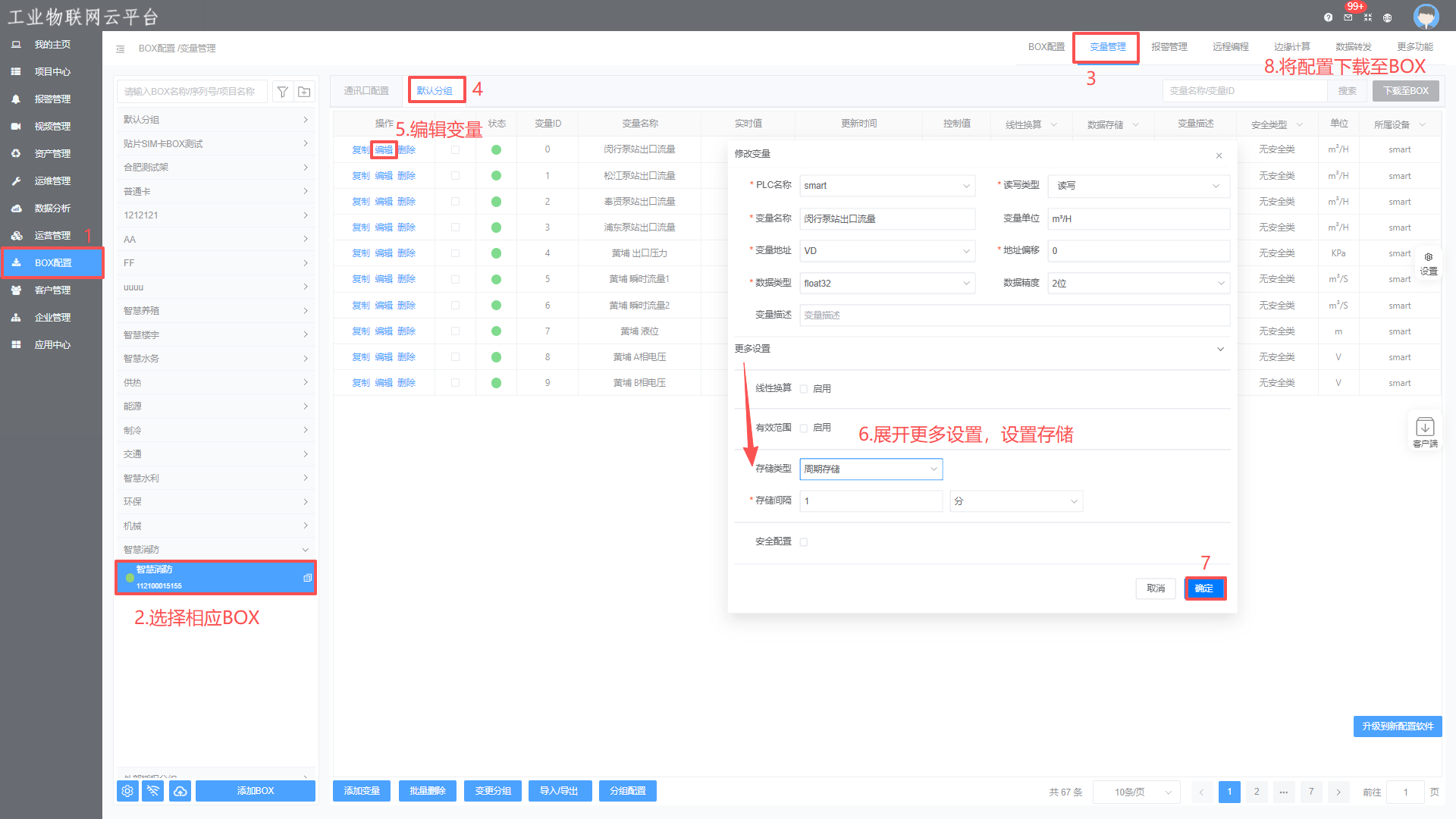 在BOX配置中,选择变量—>设置存储—>下载至BOX