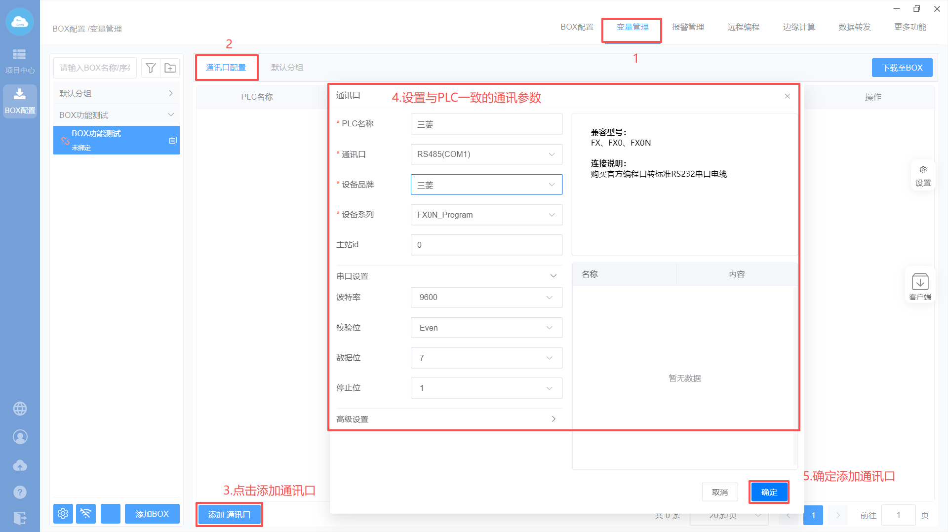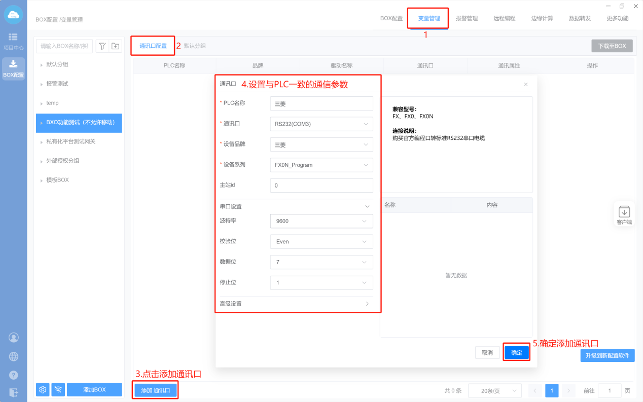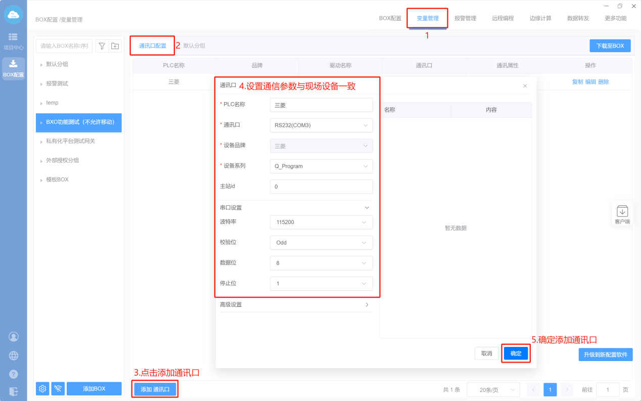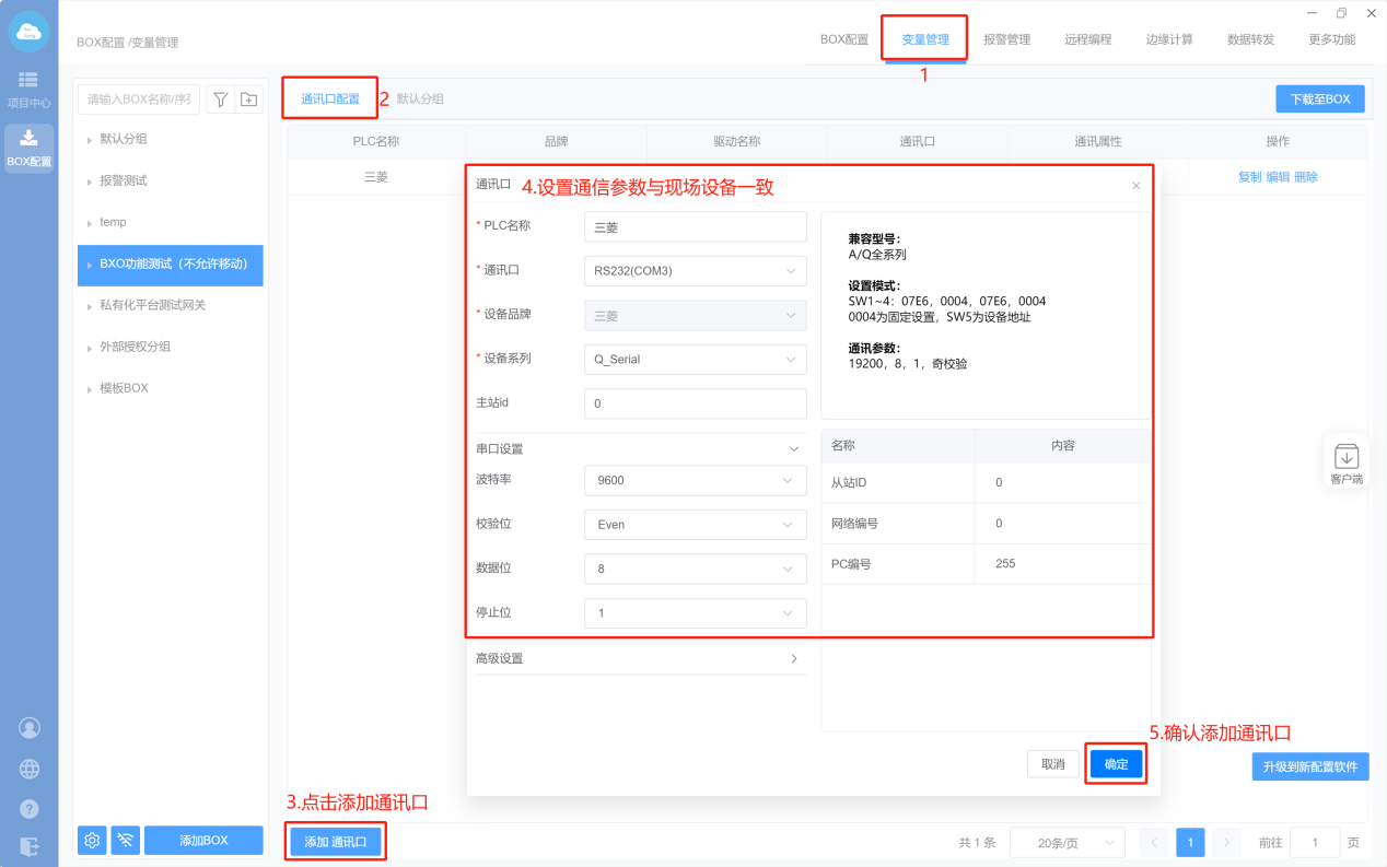 - Box配置(主站ID不需要填写,默认即可;波特率保持默认)