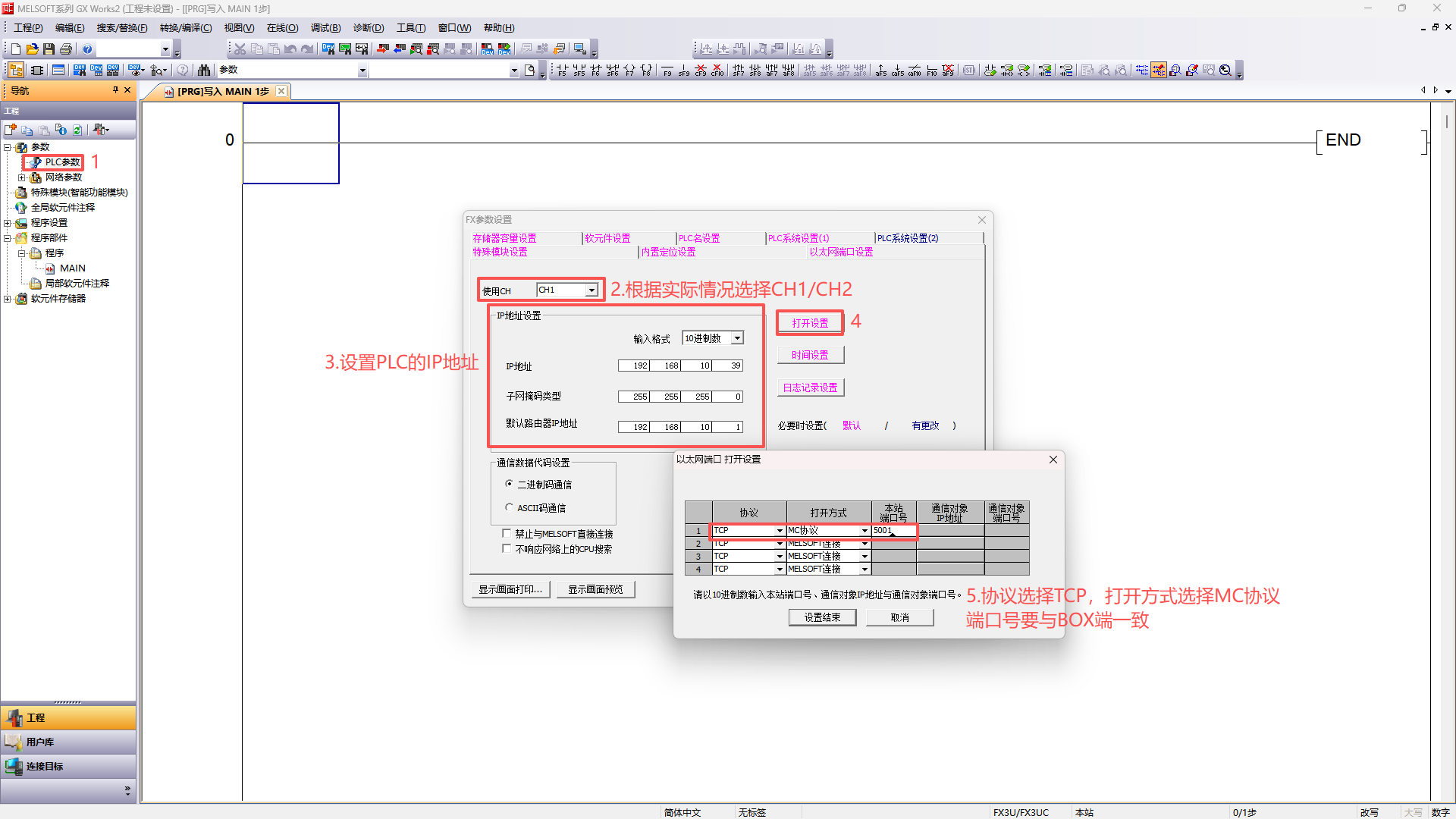 2.设置MC协议,端口号与配置软件里保持一致;