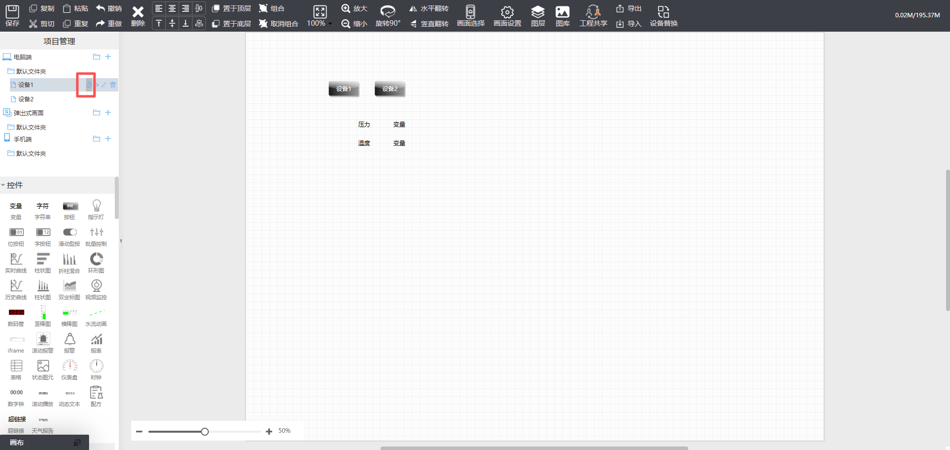 - 设备1画面设计好并且关联变量