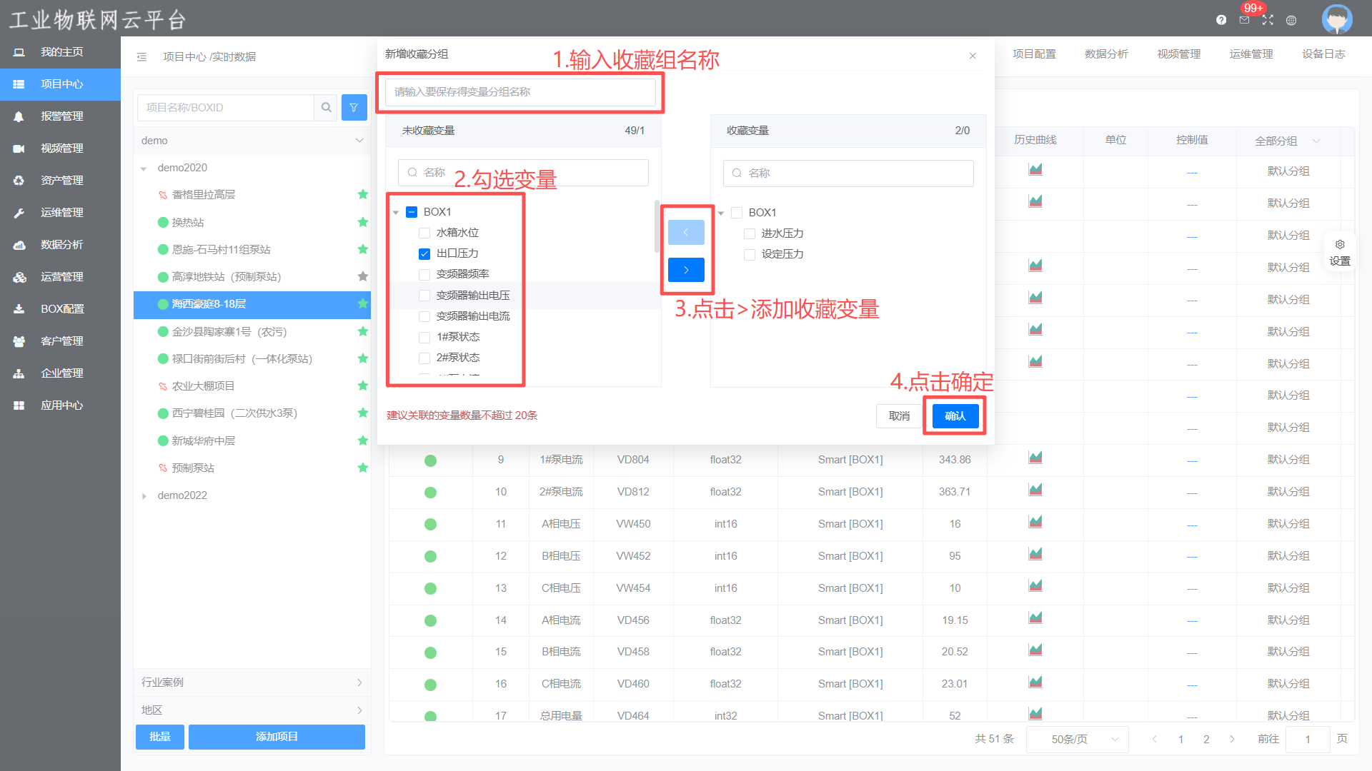 云平台【项目中心】-【数据监控】-【实时数据】-【新建收藏】