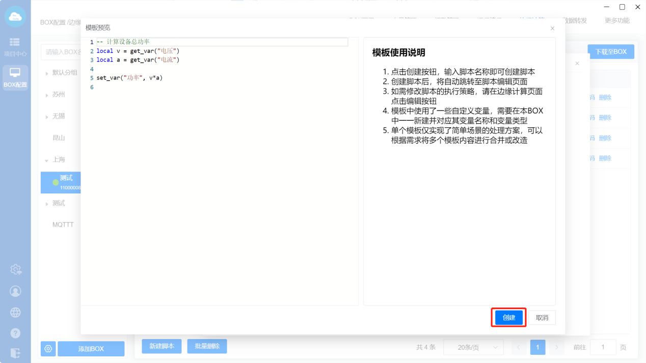 操作方法:新建脚本—>选择模板—>编辑脚本并保存—>下载到BOX