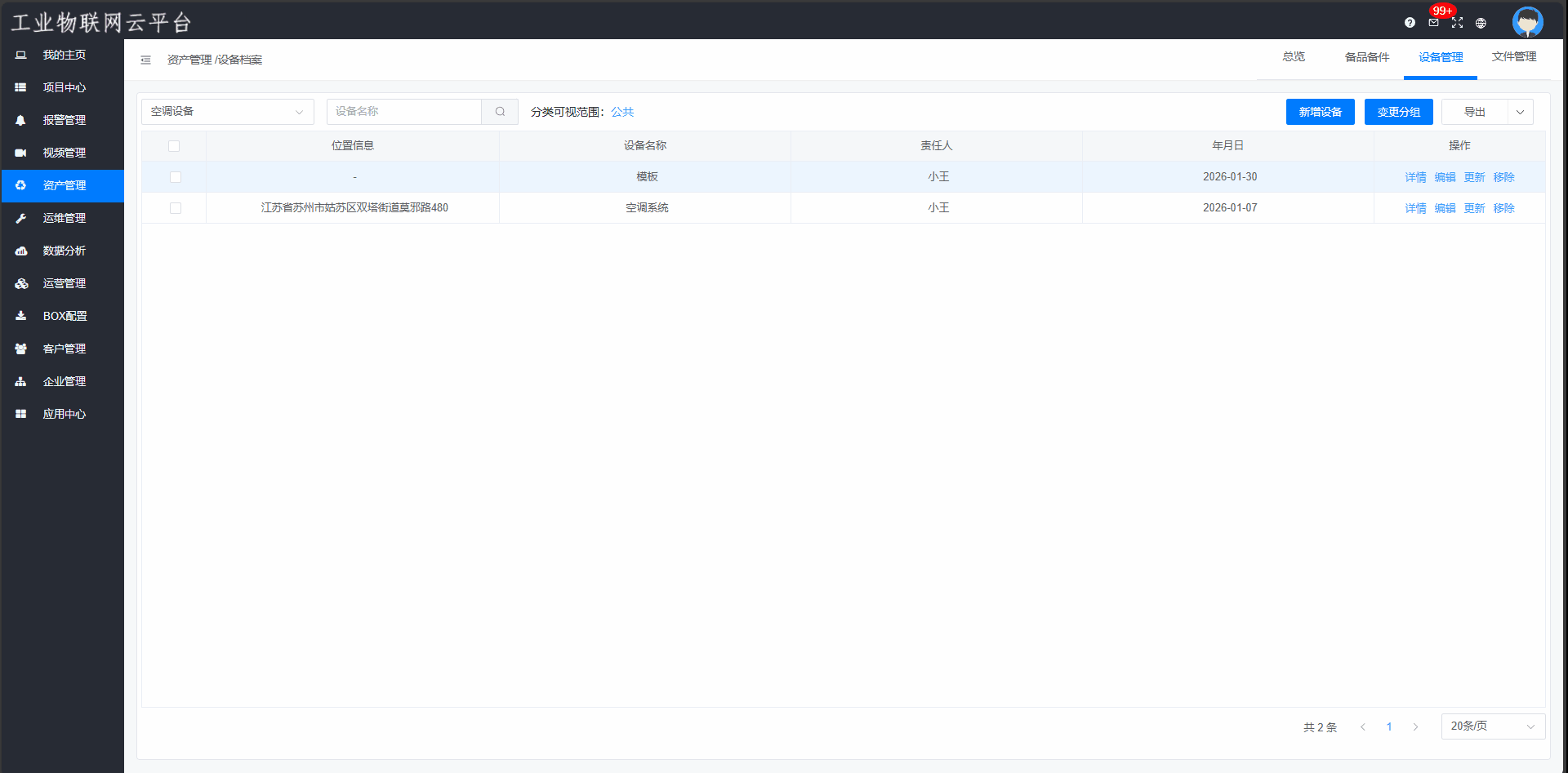 (1)支持设备资产创建、导入、分类管理,全生命周期管理;