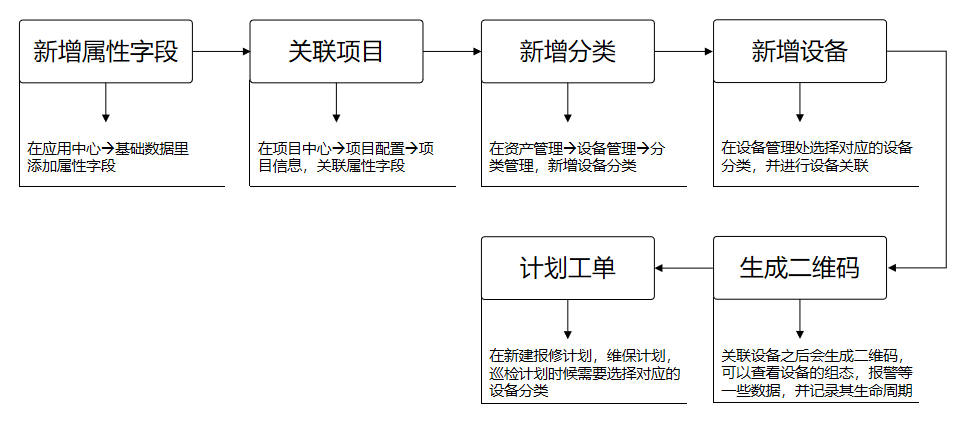 可以对所有的设备进行归类并管理,每个设备都可以生成二维码,记录其生命周期,以及后期的报修计划、保养计划、巡检计划。