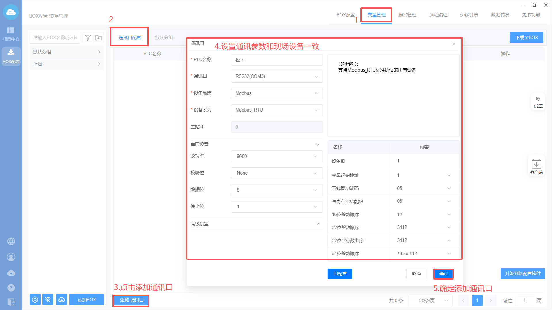 Box设置(注意:修改box参数,与PLC的串口参数保持一致)