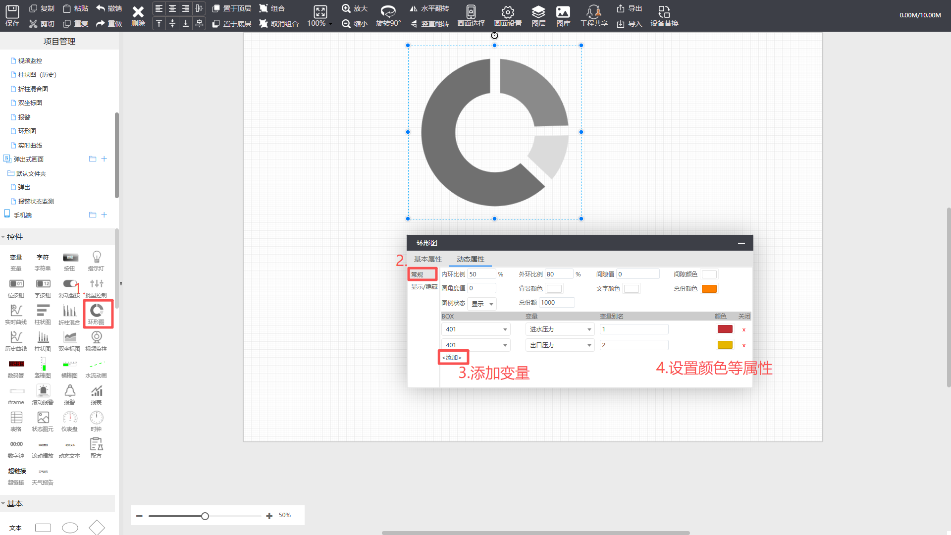 功能:实时获取变量数据并以饼图的形式展示出百分比列。