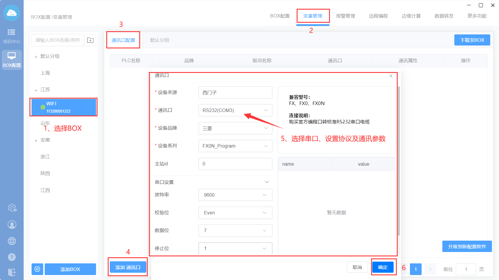 BOX配置:配置BOX参数以及通讯设置的地方;