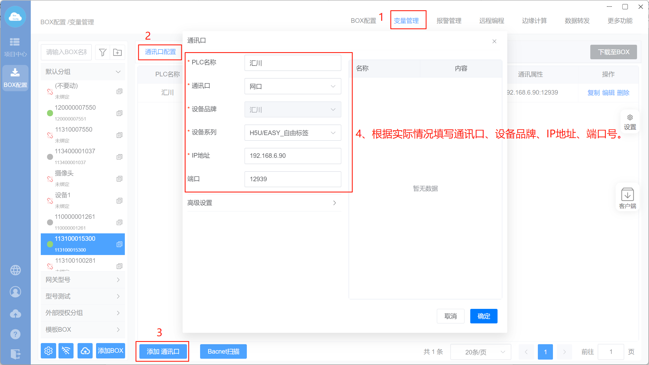 - BOX配置(注意:修改box参数,与PLC保持在同一网段)