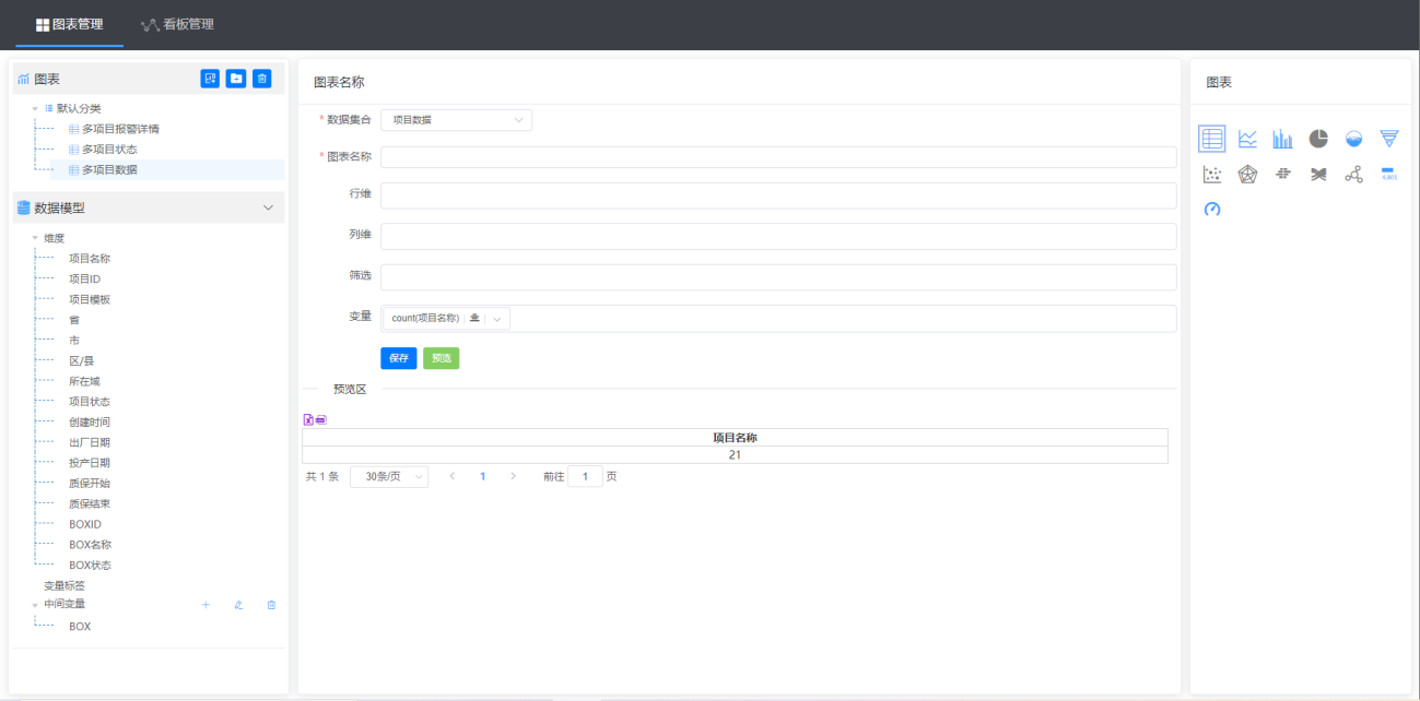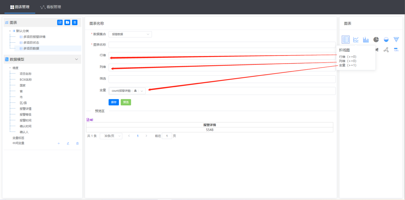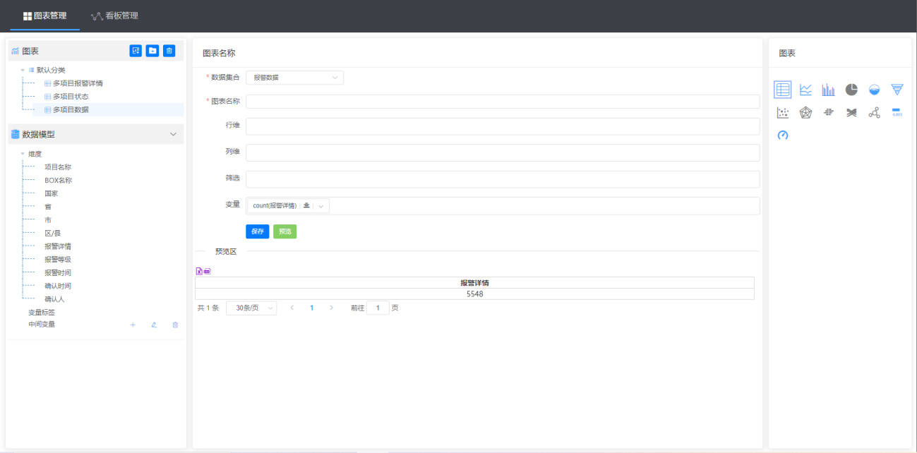 将当前看板内所有的图表的维度提取出来,然后设置以哪一个维度进行筛选数据