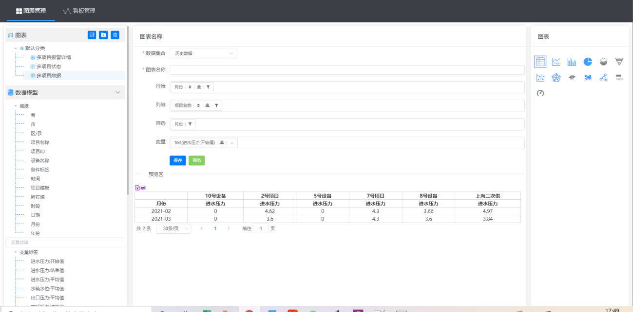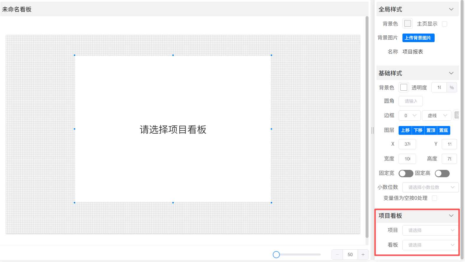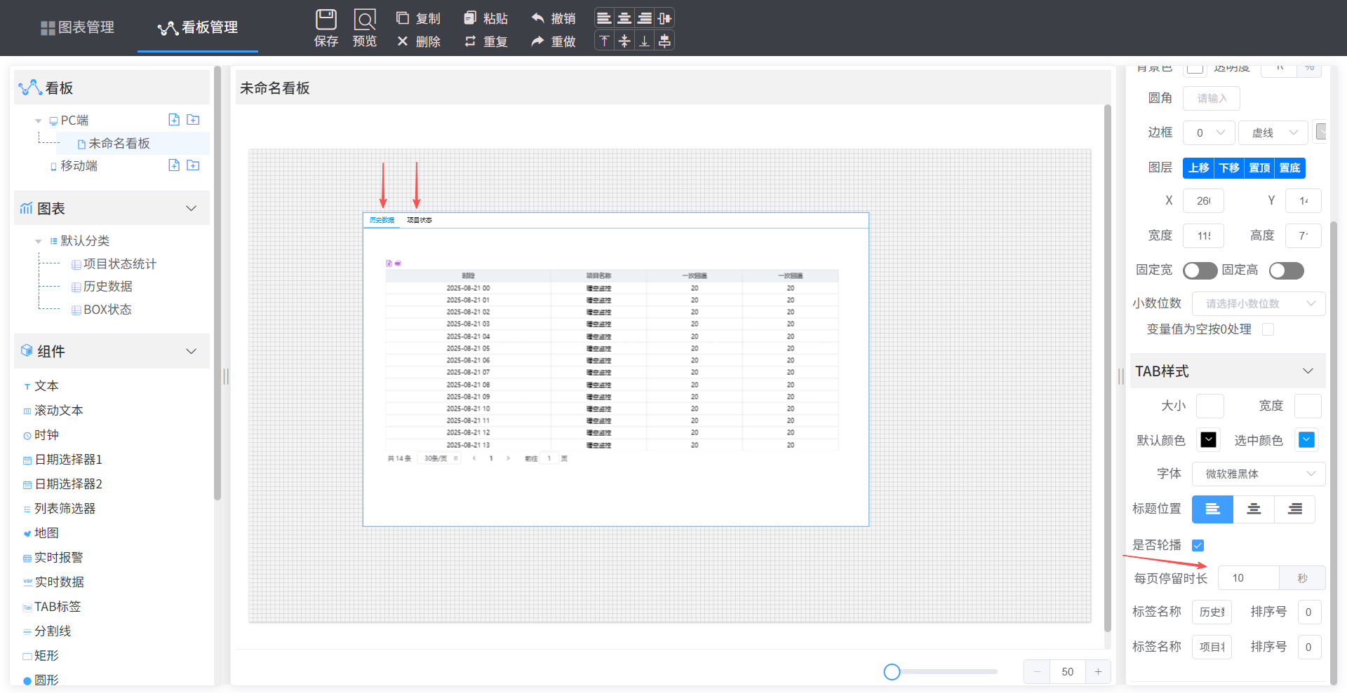 展示不同的界面,支持组态画面、链接以及项目看板。看板内容需要在动态看板选择器中新增。