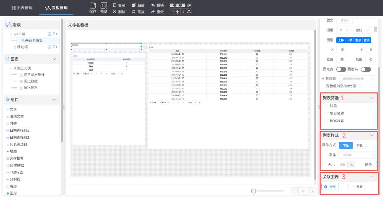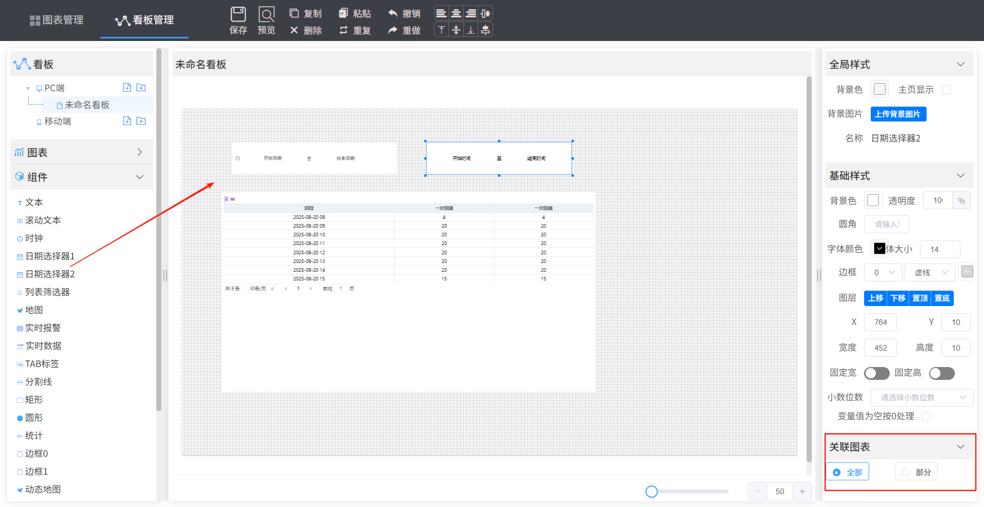 可以关联当前看板内所有或者部分图表,被关联的图表可以同步联动。