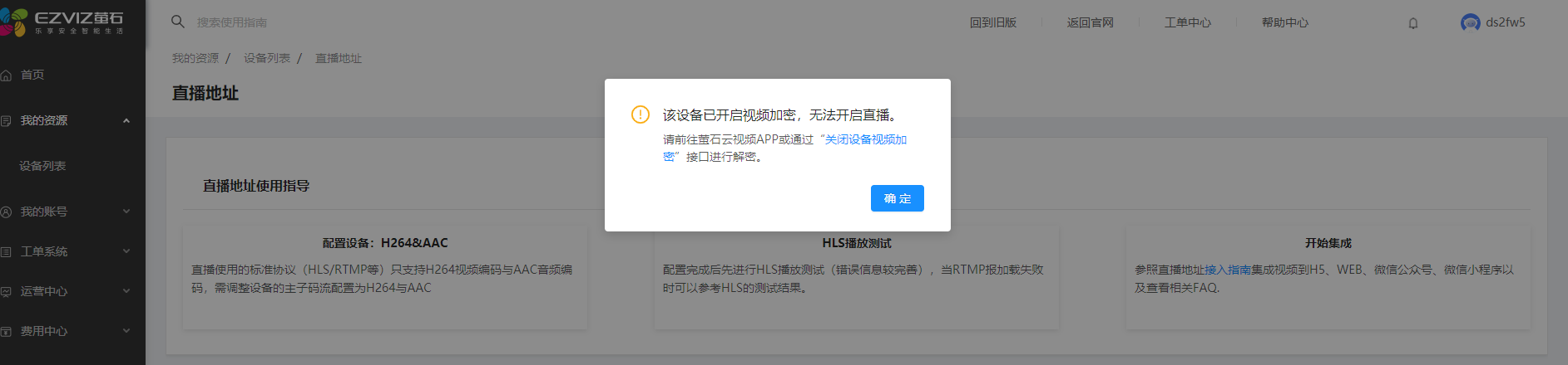 进入控制台页面后, 点击设备管理器-设备管理,选择您将使用的设备, 点击“视频直播”,选择直播地址,然后点击复制,在云平台填写(设备与萤石云之间的绑定请查看说明书或咨询客服)