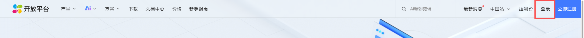 进入萤石云开放平台:https://open.ys7.com/,点击右上角登录。